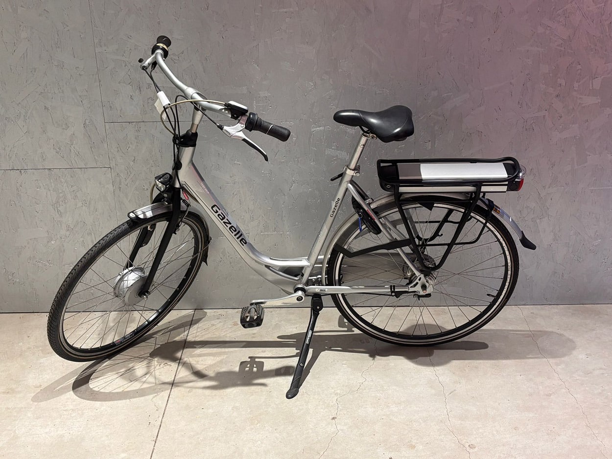 Merk: Gazelle Type: Orange e-bike Categorie: e-bike (electrisch), Trekking Soort: Dames Maat: 53 cm Wielmaat: 28 inch typeversnelling: Shimano Naaf Aantal versnellingen: 7 Kleur: zilver Wilmarnummer: 1869 Prijs: € 600,- Vestiging: Roermond