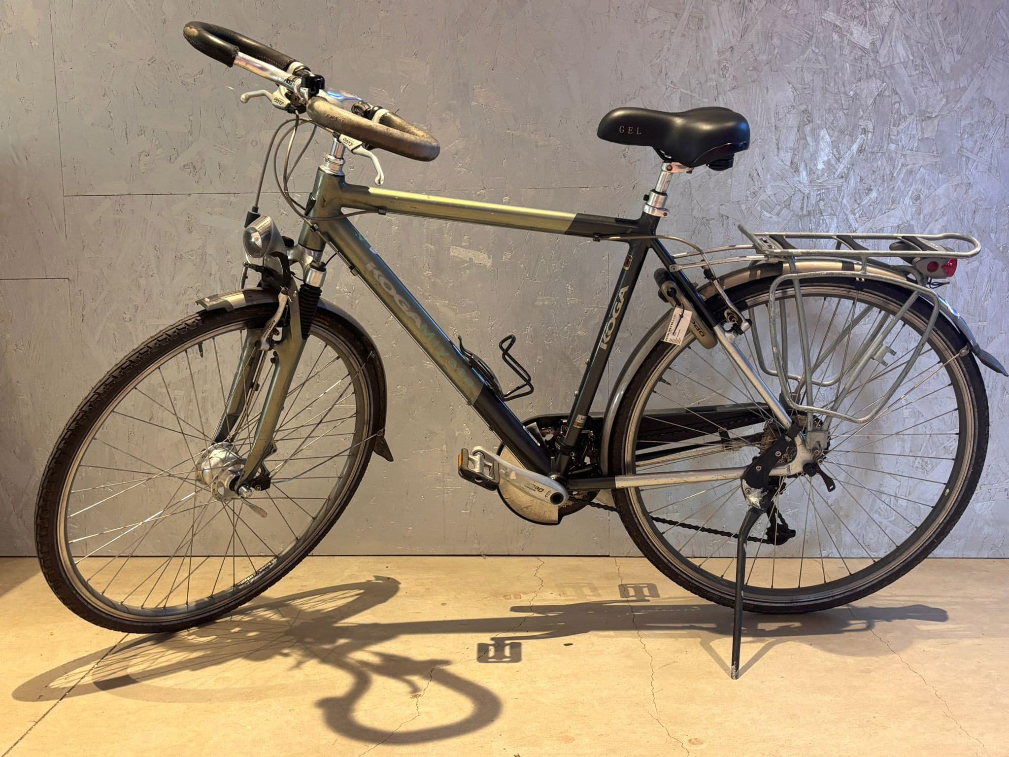 Merk: Koga Type: Miyata Categorie: Herenfiets Soort: Heren Maat: 48 cm Wielmaat: 26 inch typeversnelling: Shimano Derailleur Aantal versnellingen: 27 Kleur: Groen/blauw Wilmarnummer: 1945 Prijs: € 325,- Vestiging: Roermond